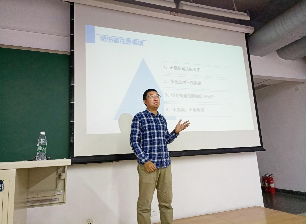 最后,孙老师向学生们介绍了学校保卫处的地址和联系方式,传授了如何更快更好地求助甚至求救的方法。经过一个多小时的讲座,孙老师用大量的真实案例、丰富的知识和经验及幽默的语言,成功地引起了大家对安全问题的更高重视和更深入思考,令大家获益良多。
