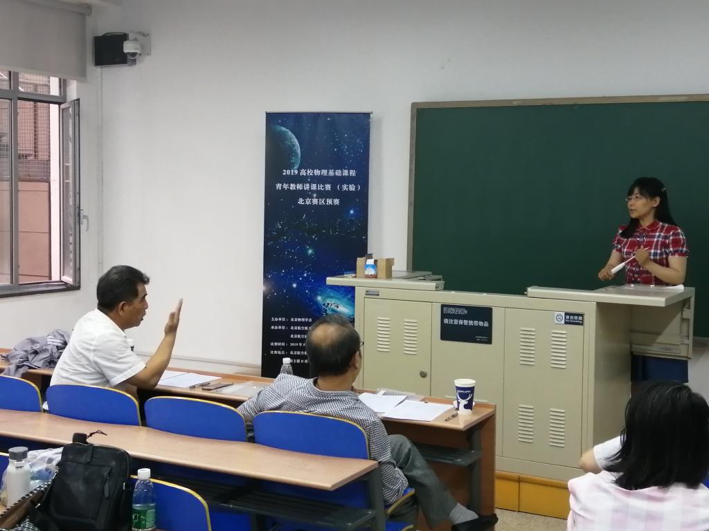 2019高校物理基础课程青年教师讲课比赛北京赛区预赛由北京市物理学会主办,北航best365官方网站登录入口承办,于2019年5月18日在北航新主楼成功举办,获得了主办方北京物理学会及参赛各高校老师的一致好评。讲课比赛的程序是每位选手抽取比赛题目,然后用1小时时间备课,比赛时每人讲15分钟,回答评委提问10分钟。更为可喜的是,北航best365官方网站登录入口的两位青年教师王菁和熊畅在比赛中表现突出,分获该项赛事的一等奖和二等奖,其中获得一等奖第一名的王菁老师将作为北京赛区代表参加6月初的华北赛区复赛。