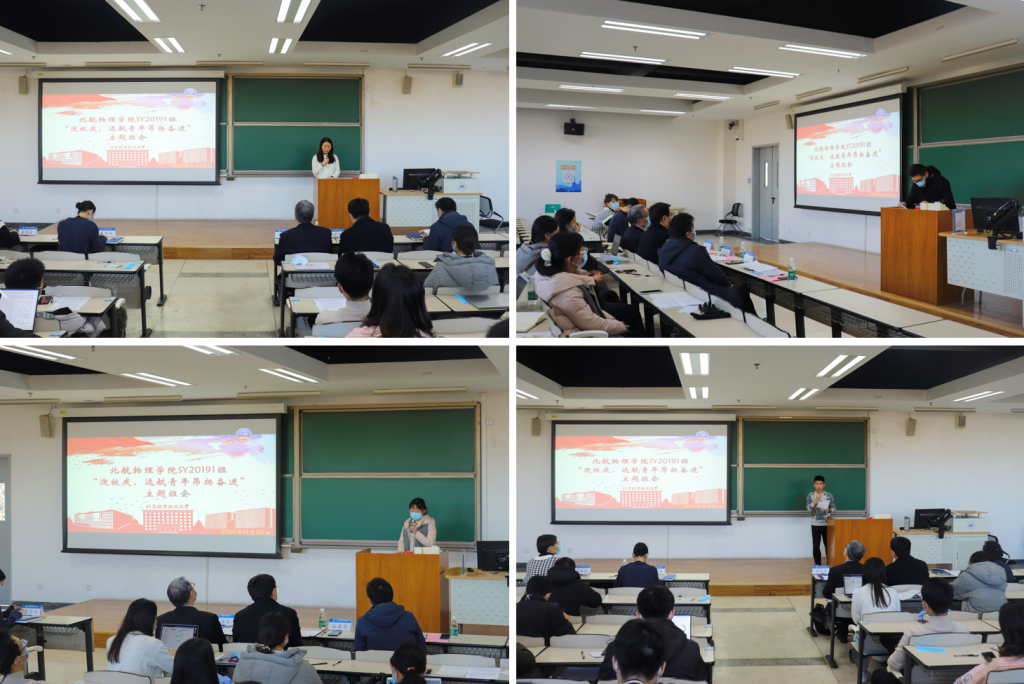 站在新征程的起点,北航学子要厚植家国情怀、锤炼品德修为、涵养科学精神、笃行勤学实干,紧扣新时代脉搏,传承空天报国精神,将个人成长发展选择与国家的需要联系,为实现中华民族伟大复兴贡献青春力量。在此,谨以此次班会提前恭祝北航的七十华诞,也期待这一年中所有同学能用满意的答卷喜迎北航七十载校庆。