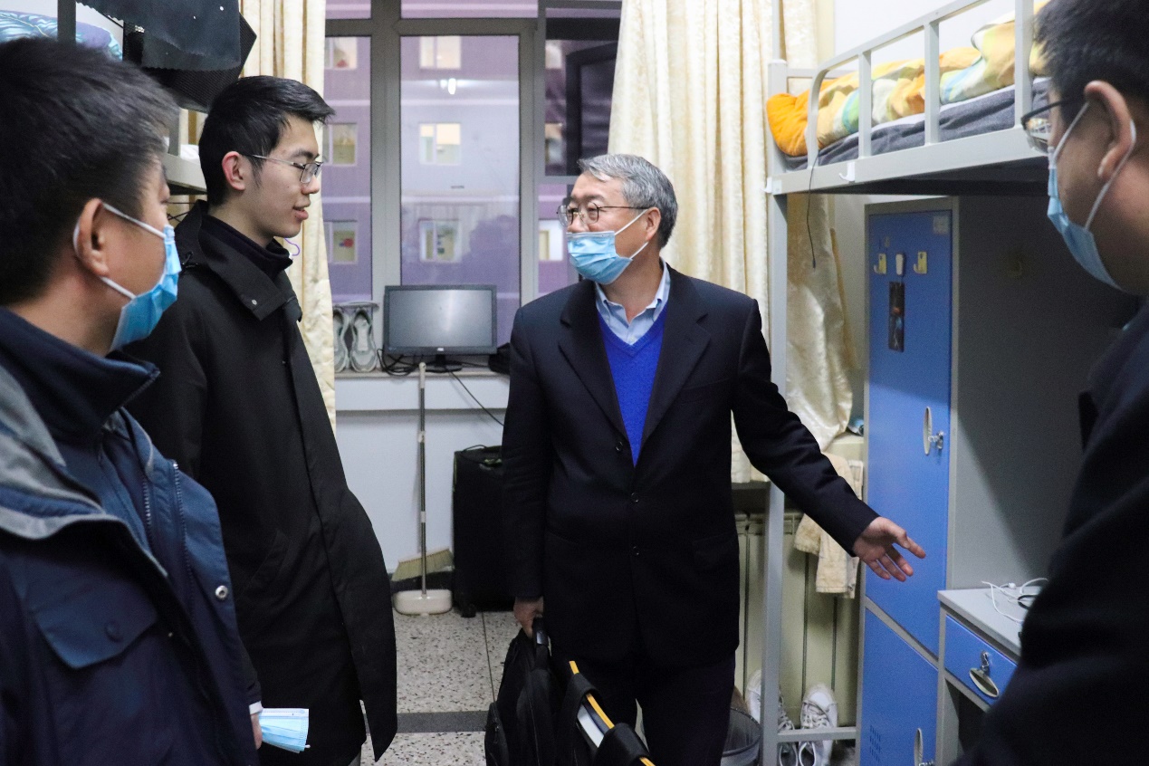 党课结束后,黄海军副校长还专程到SY20191班研究生宿舍走访慰问。每到一间宿舍,黄海军副校长都与同学们亲切交谈。他仔细询问了大家的生活和学习情况,认真听取大家对学校发展建设的意见和建议,并表示学校会不断为同学们创造良好的宿舍生活环境,努力解决大家在日常生活中的实际问题。