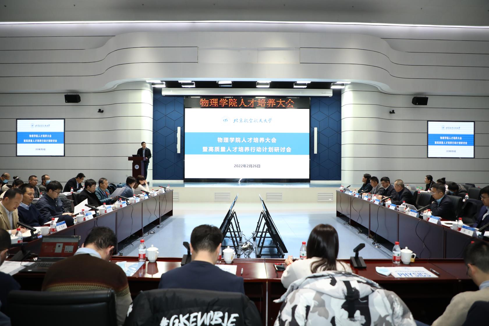 会上,黄安平副院长作了《立足新时代,构建一流物理课程的思考与探索》报告。院长助理金硕作了《提升认知、助力成长——物理专业人才培养教学体系实践与思考》报告。孙保华副院长作了《强化过程管理,全面提升研究生培养质量》报告。吕经纬副书记作了《提高学生思政工作质量,培育新时代物理人才》报告。