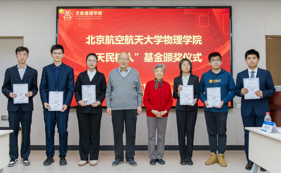 王天民教授曾担任北航理学院常务副院长、院长,是物理学和材料科学的学术和学科带头人。从事物理教学科研工作56年,1997年调到北航工作,为北航物理学科的发展作出了卓越贡献。2019年11月,为进一步支持北航物理学科发展建设,王天民教授夫妇捐资100万元建立“天民树人基金”,奖励学校物理领域的品学兼优的学生和出类拔萃的青年教师。
