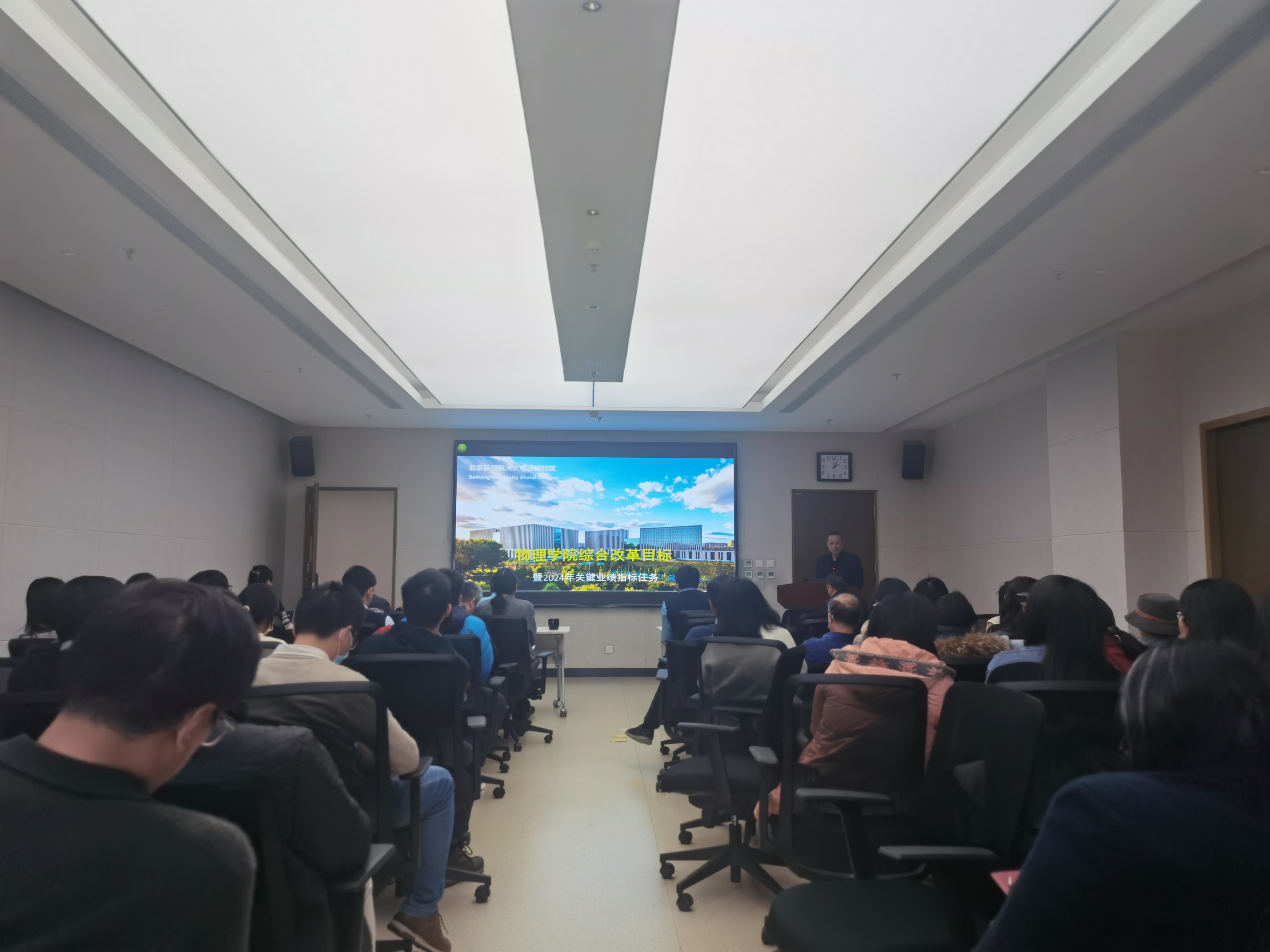 吕广宏院长传达学校2024年度工作会议精神,结合学院实际工作,全面解读学院2024年关键业绩指标任务,并部署学院2024年重点任务。2024年是学校“办学质量提升年”,也是学院综合改革的关键一年,学院将围绕综合改革总体目标,稳步推进学院综合改革工作。面向物理国际科学前沿与国家重大战略需求,强化理工融合,持续推进学科、平台、团队一体化建设,建好彭桓武科教合作中心,重点加强有组织教学、有组织科研工作。李广超书记结合学院重点工作,就如何提升自主人才培养质量、开展有组织自由探索、提升学院治理效能、建设平安物理等方面解读重点举措,并倡议全体教职员工紧抓发展机遇、深化创新意识、增强创新硬实力、凝心聚力,为建设一流best365官方网站登录入口贡献力量。