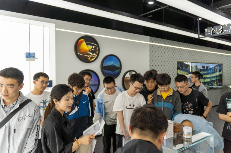 随后,我院师生一行参观了京东方历史展览馆。在展览馆,讲解员从企业发展历史、荣誉和社会服务、产品应用领域、前沿技术等几方面进行讲解,带领参访学生近距离了解企业风貌。同学们参观了馆内的智慧教育、智慧办公、智慧交通、数字医疗、居家健康和视觉艺术等展台,近距离感受到了科技的魅力。
