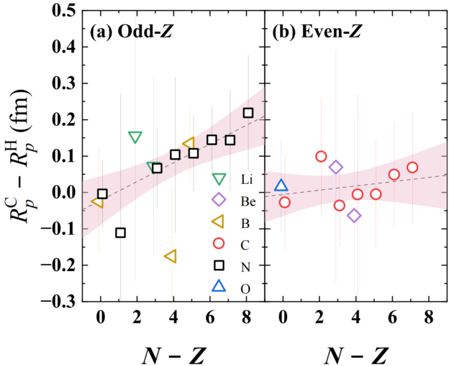 图3:利用碳靶和氢靶数据提取的轻原子核的点质子分布半径