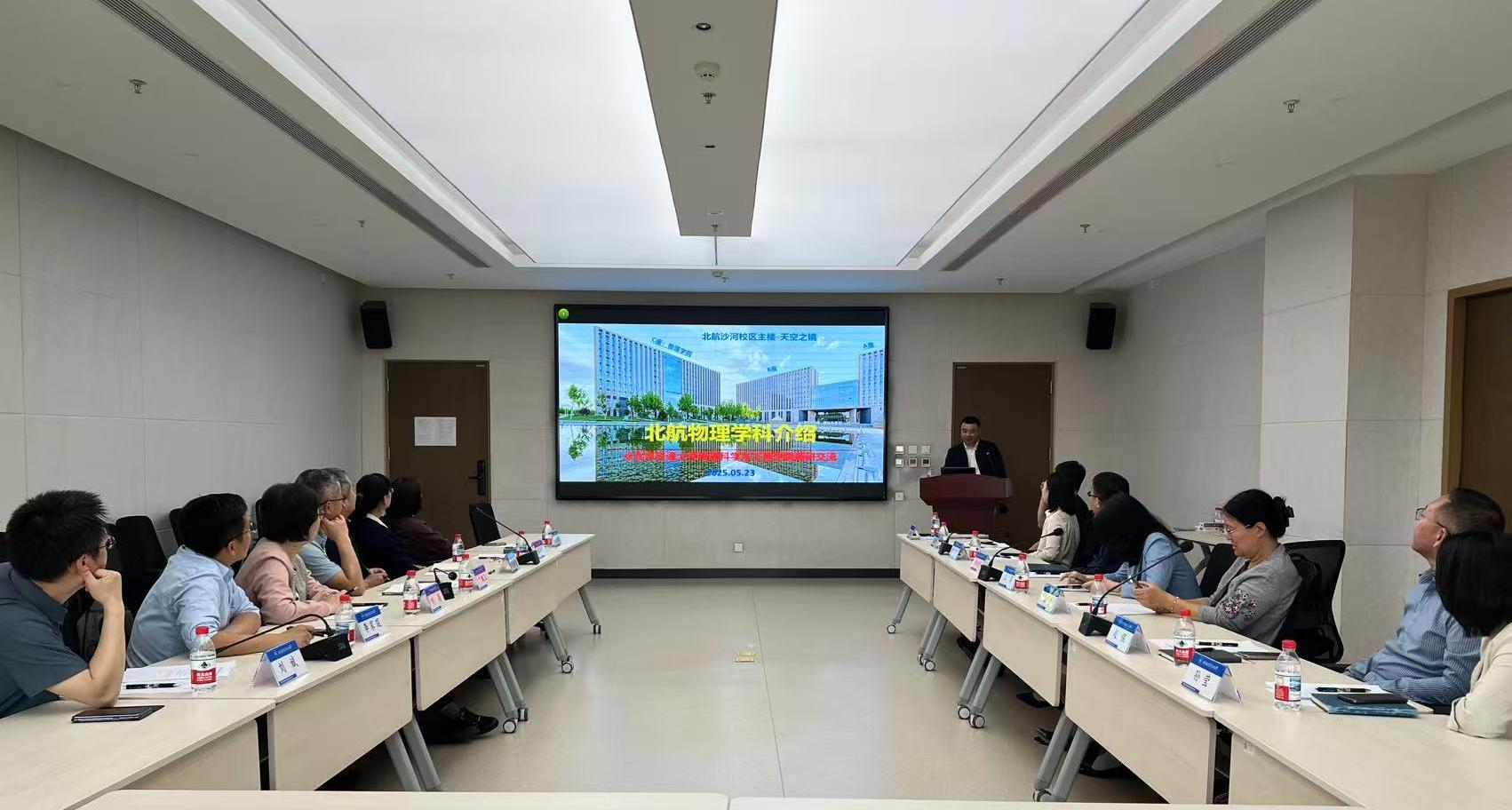 2025年5月23日,北京交通大学物理科学与工程学院代表团到我院调研,会议在北航沙河校区主楼C511会议室举行。此次活动旨在深化两院在物理学科领域的合作,携手探索人才培养、学科建设及师资管理等方面的新路径、新举措。两院党委领导、学科负责人及教师代表共15人参会。