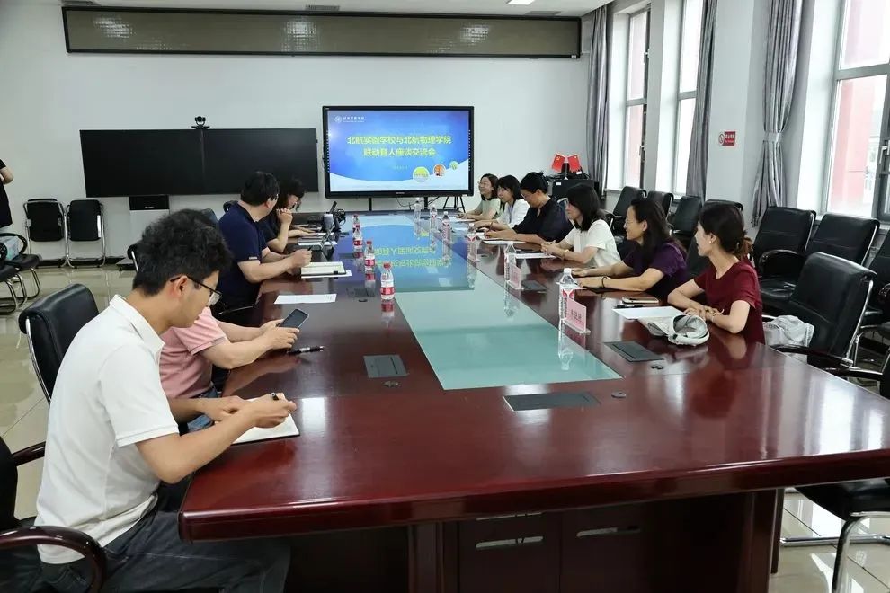 7月11日,best365官方网站登录入口与北航实验学校中学部物理教研组举行合作交流座谈会。best365官方网站登录入口党委书记王菲等领导及教师代表应邀出席,北航实验学校党委书记马树微、校长宋友及中学部物理教师团队共同参会。
