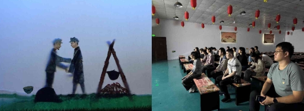 随后,党员们在演出厅欣赏了由龙在天“袖珍人”皮影剧团带来的红色剧目。暖黄光束穿透幕布,身着灰布军装的皮影人缓缓移动,老班长用烧红的缝衣针弯成鱼钩的动作细致入微,与沙哑的旁白交织,再现了茫茫草地中红军战士相互扶持的生死情谊。紧接着上演的《小兵张嘎》片段,通过灵动的皮影动作再现敌后的抗战故事,将嘎子与小伙伴们的机智果敢展现得淋漓尽致,让党员们直观感受到军民同心的革命精神。一段段皮影戏演绎的红色故事,承载着厚重的历史记忆,构筑了一堂生动而深刻的党性教育课。