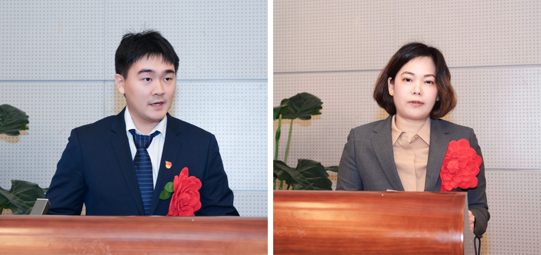 优秀共产党员学生代表、本科生党支部书记高梓航从“ 坚守初心,在见贤思齐中坚定信仰 ”、“ 知行合一,在学思践悟中锤炼党性 ”、“ 矢志奉献,在实干笃行中担当使命 ” 三个方面,分享了自己作为青年党员的成长感悟, 并表示未来会始终把党和人民放在心中最高位置 ,努力将个人成长融入国家发展的江河,用一生的行动践行共产党员的初心与誓言。 优秀共产党员教师代表、核科学与技术系党支部书记宋春艳以“ 不忘初心,恪守价值坚守与行动自觉 ” 为题分享实践思考。在教学方面,她深耕课堂阵地,将育人初心转化为精耕细作的教学自觉;在支部建设方面,她筑牢支部堡垒,通过拓展共建平台、创新工作机制、打造品牌活动等举措系统推进党建与业务融合,助力学院 成为 国内首个核物理一流专业 建设点 。最后她呼吁全体师生以初心赴使命,为建设教育强国和一流学科笃定前行。