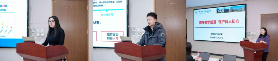 三场报告结束后,参会教师围绕教学规范化建设、教学过程管理优化、课堂教学质量提升、教材选用与编写实践等议题,与三位专家展开热烈讨论。大家积极分享教学经验,提出实际教学中遇到的问题,并就如何进一步提升教学规范性与教学质量进行了深入交流。