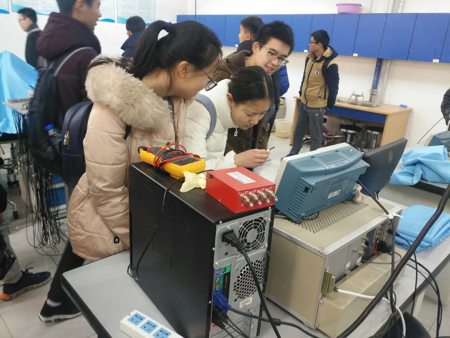 同学们在近代物理实验室里进行实验