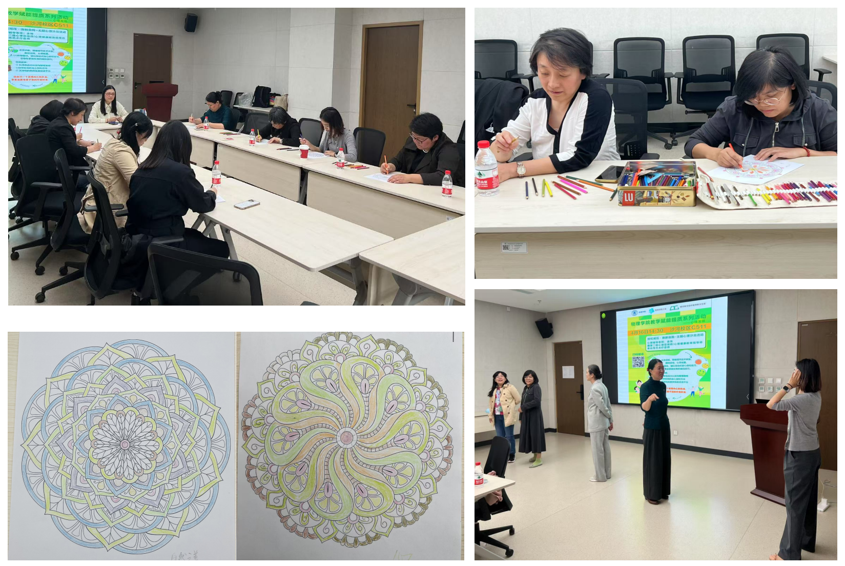 本次沙龙采用沉浸式团体心理辅导模式,设置三大特色模块:由专业心理教师带领的正念训练将引导参与者聚焦当下,缓解焦虑;情绪调节技术体验环节提供实用减压工具;趣味互动游戏和心灵绘画等创意表达活动,帮助教师释放情绪压力、开展潜意识探索与团体交流,为教师构建互助支持平台。参与者可通过多维度体验,系统掌握压力管理策略与即时放松技巧。