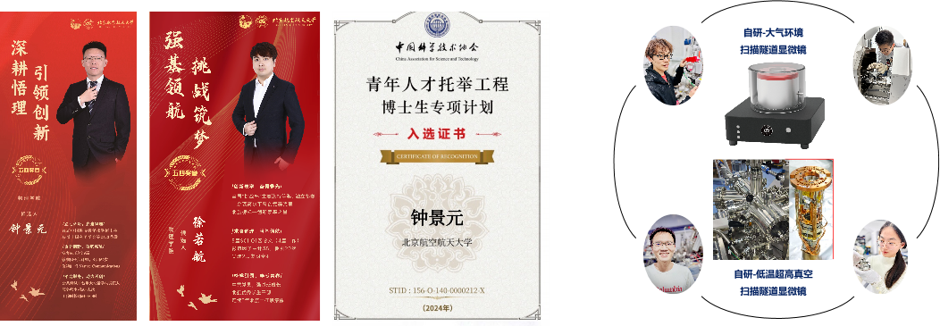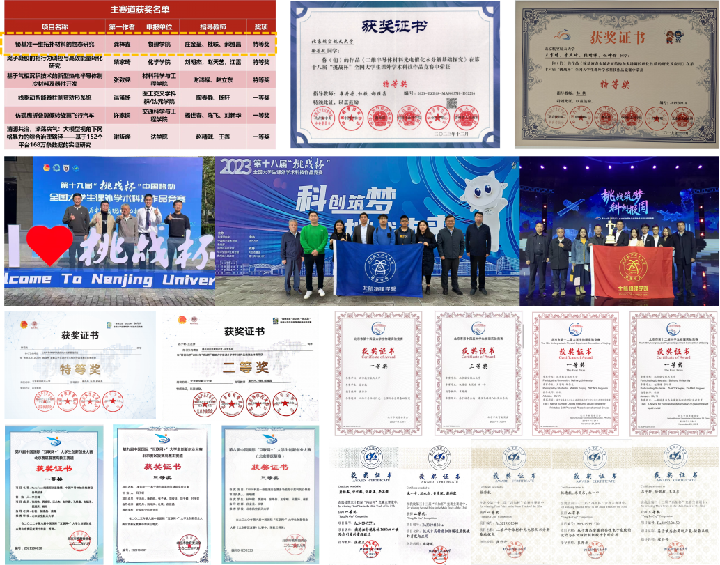 持续建设育人平台,学业导师6人,研究生思政导师4人,充分发挥导师在导学、导心、导向、导行方面的作用。团队本科生在二维材料、扫描隧道显微镜开发、低维异质结构研究等领域开展研究工作,获得包括第十六届、十八届、十九届“挑战杯”全国大学生课外学术科技作品竞赛特等奖三项(破全国纪录)、第十二届北京市大学生物理实验竞赛一等奖、北航“冯如杯”学生学术科技作品竞赛一等奖等国家级奖项3项,省部级10项。过去三年,团队研究生获得“青年托举”项目、国家奖学金、北京市优秀毕业生、北航“五四”奖章、国家奖学金、best365官方网站登录入口优秀博士一等奖学金、best365官方网站登录入口博士研究生卓越学术基金等项目及荣誉50余项。