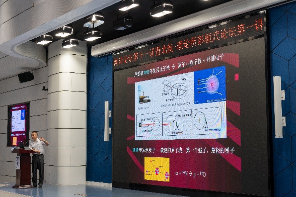 报告中,邹冰松院士从四种基本相互作用出发,带领同学们从人类开始物质相互作用初步认识的年代,走到当前强相互作用的强子结构、核素图、量子色动力学的相结构等三个基础研究前沿领域的研究概况,走向未来国家重大科技基础设施的建设与发展,指出理论研究和实验研究的紧密结合促使我国在强相互作用物理领域占据重要一席之地。邹院士介绍了第一个获得诺贝尔奖的强相互作用的研究成果——卢瑟福(Ernest Rutherford)α粒子散射,带领大家领略了这一时代卢瑟福及其学生、助手在强相互作用研究中的探索和创新,相关成果取得的十多次诺贝尔物理学奖及化学奖。在卢瑟福等科学家成果的基础上,人们研究了核力、核结构、核天体、核技术等,提出了强相互作用最基础的理论量子色动力学。强相互作用的研究成果一共获得二十八次诺贝尔奖,一次次拓展了人类对客观世界的认识,改变人类的生产生活方式。邹冰松院士将一代代学者对强相互作用认识逐渐深入的故事讲述得丰富详尽,引人入胜,历史上那些科学家的身影栩栩如生。